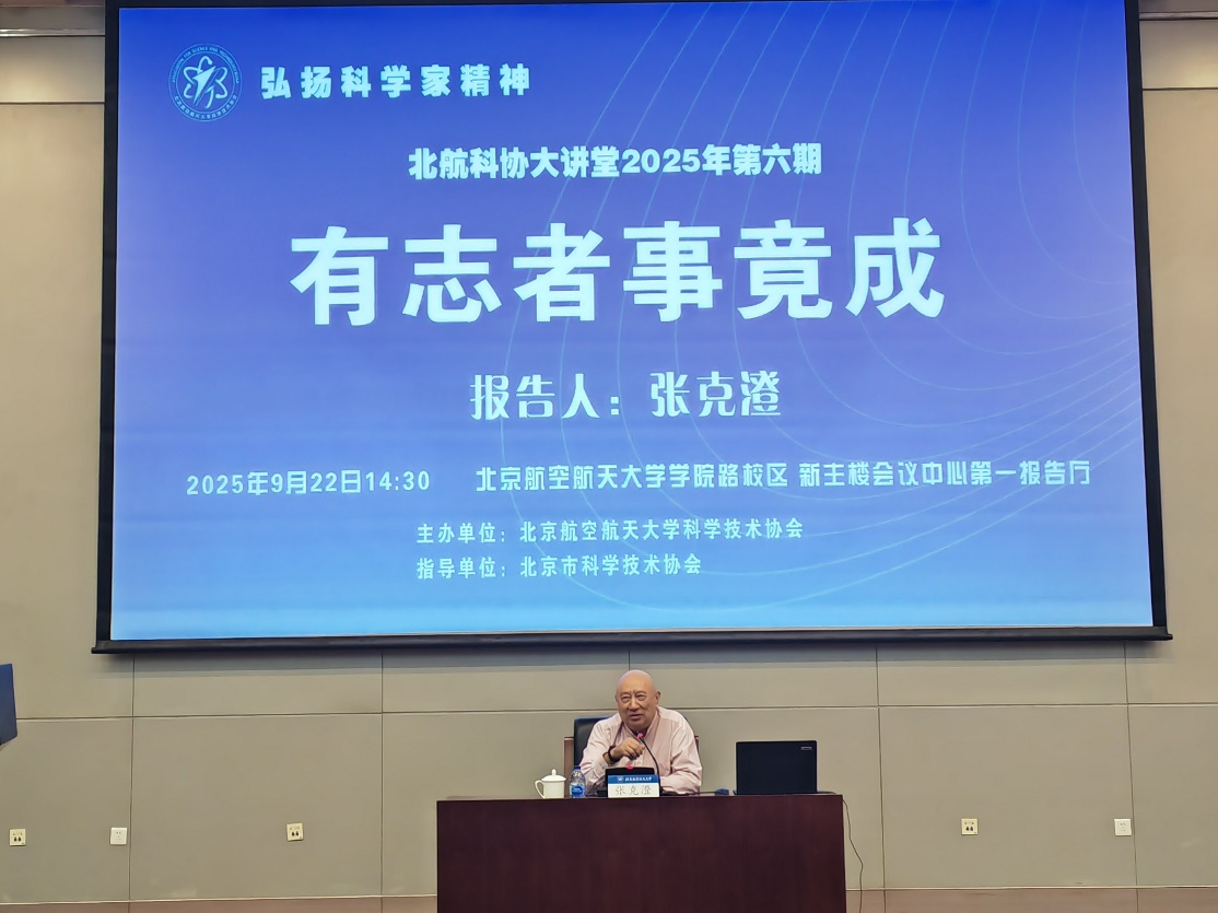 北航新闻网9月23日电(通讯员 鲜宁)金秋送爽,科技筑梦,九月流金,科普燃情。随着首个“全国科普月”的历史性启幕,这场承载着国家科技战略使命、凝聚着全民科学期望的盛会正以如火如荼之势在全国范围持续掀起热潮。为弘扬科学家精神、培养家国情怀,营造弘扬科学、热爱科学,尊重科学家的良好氛围,北航科协在学校党委和行政的关怀指导,以及中国科协和北京市科协的共同支持下,举办以弘扬科学家精神为主题的2025年第六期北航科协大讲堂活动。