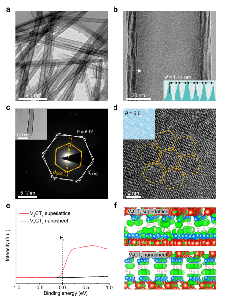 图2. 非范德华超晶格的原子结构与电子结构