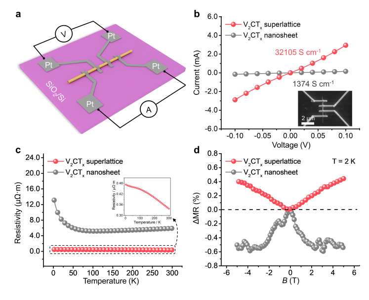 图3. 非范德华超晶格的电/磁输运性质