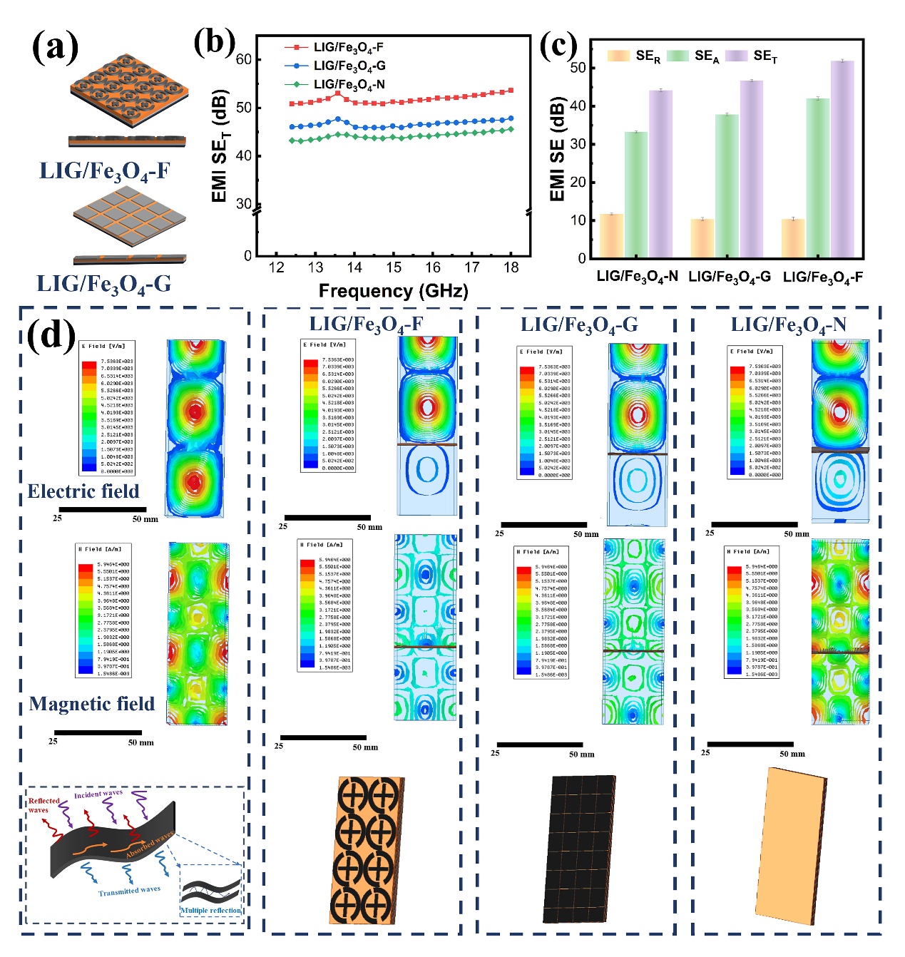北航新闻网4月9日电(通讯员 王丹)近日,机械工程及自动化学院仿生与微纳系统研究所罗斯达教授团队在《Chemical Engineering Journal》期刊发表论文《Electromagnetic-dual-gradient laser-induced graphene/Fe3O4composites with synergistic gradient-patterning for advanced electromagnetic interference shielding》。通过创新性地构建集频率选择表面(FSS)图案与多层电磁双梯度结构于一体的激光诱导石墨烯/四氧化三铁(LIG/Fe3O4)复合材料,将轻质碳基材料的总电磁屏蔽效能提升,同时保持了极低的二次反射损耗,证明了兼具高屏蔽效能、低反射与优异环境适应性的新型屏蔽材料具有重要的应用价值。